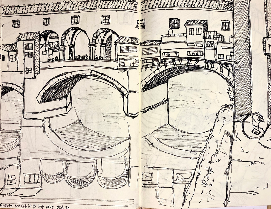 pen and ink, graphite, charcoal